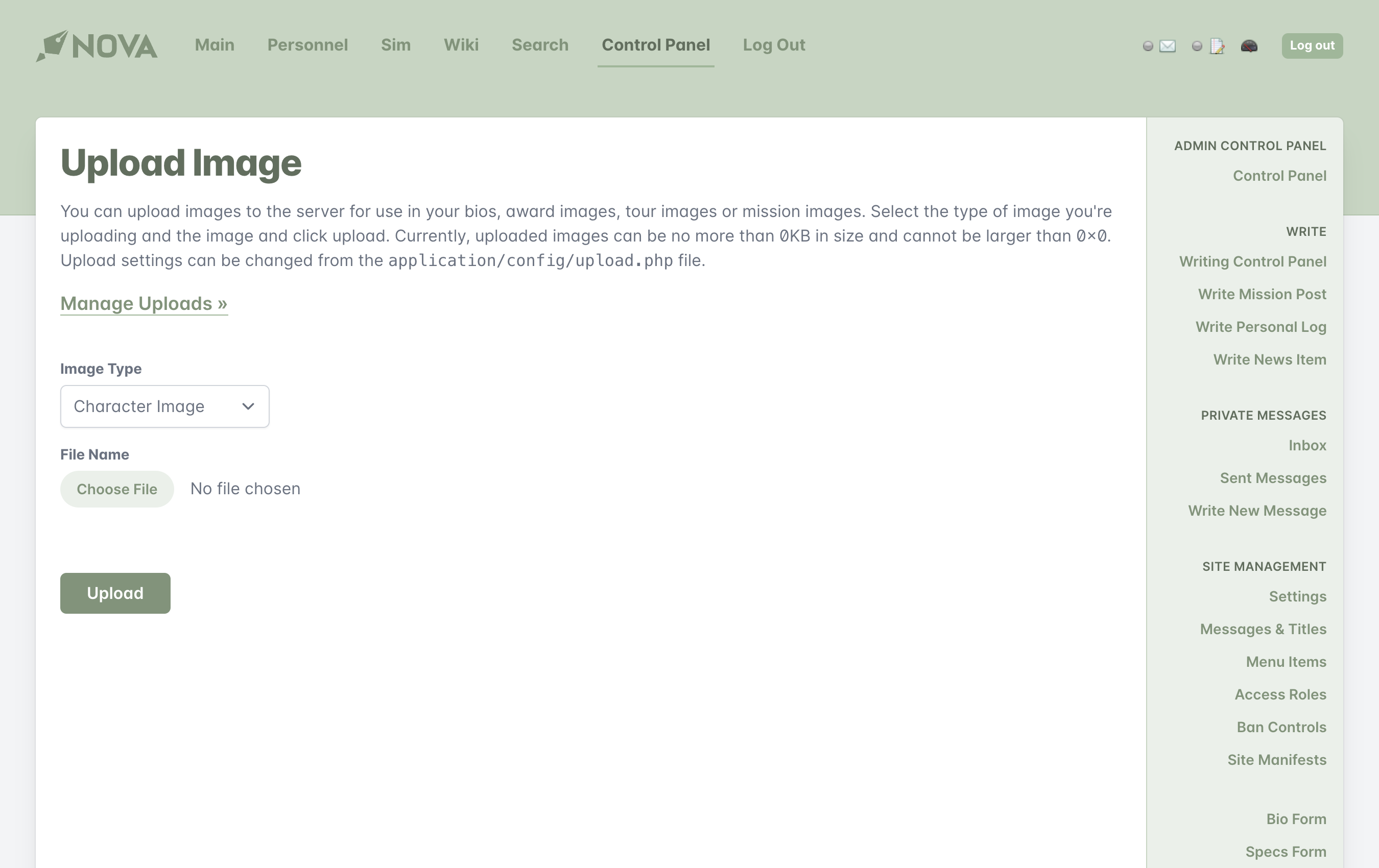 To apply to the game, access the Join Application by navigating to the game’s home or main page, and then selecting “Join” from the sidebar. Alternatively, you can also access the Join Application by navigating to the game’s personnel page, and then selecting “Join” from the sidebar. You will be taken to a preliminary screen, containing information and disclaimers that you will need to read and accept prior to joining. Nova’s default disclaimer contains generic rules, regulations, and a COPPA disclaimer to comply with United States law. In order to apply to the game, you will need to accept the conditions by clicking the Agree button. Once you agree to the conditions, you will be able to fill out the join application, which is divided into four sections:- User Information: enter your future account information. Your email address will be necessary to receive notices from the game, including news items, mission posts, and private messages. Your date of birth may also be necessary to verify that you meet the age requirements for the game.
