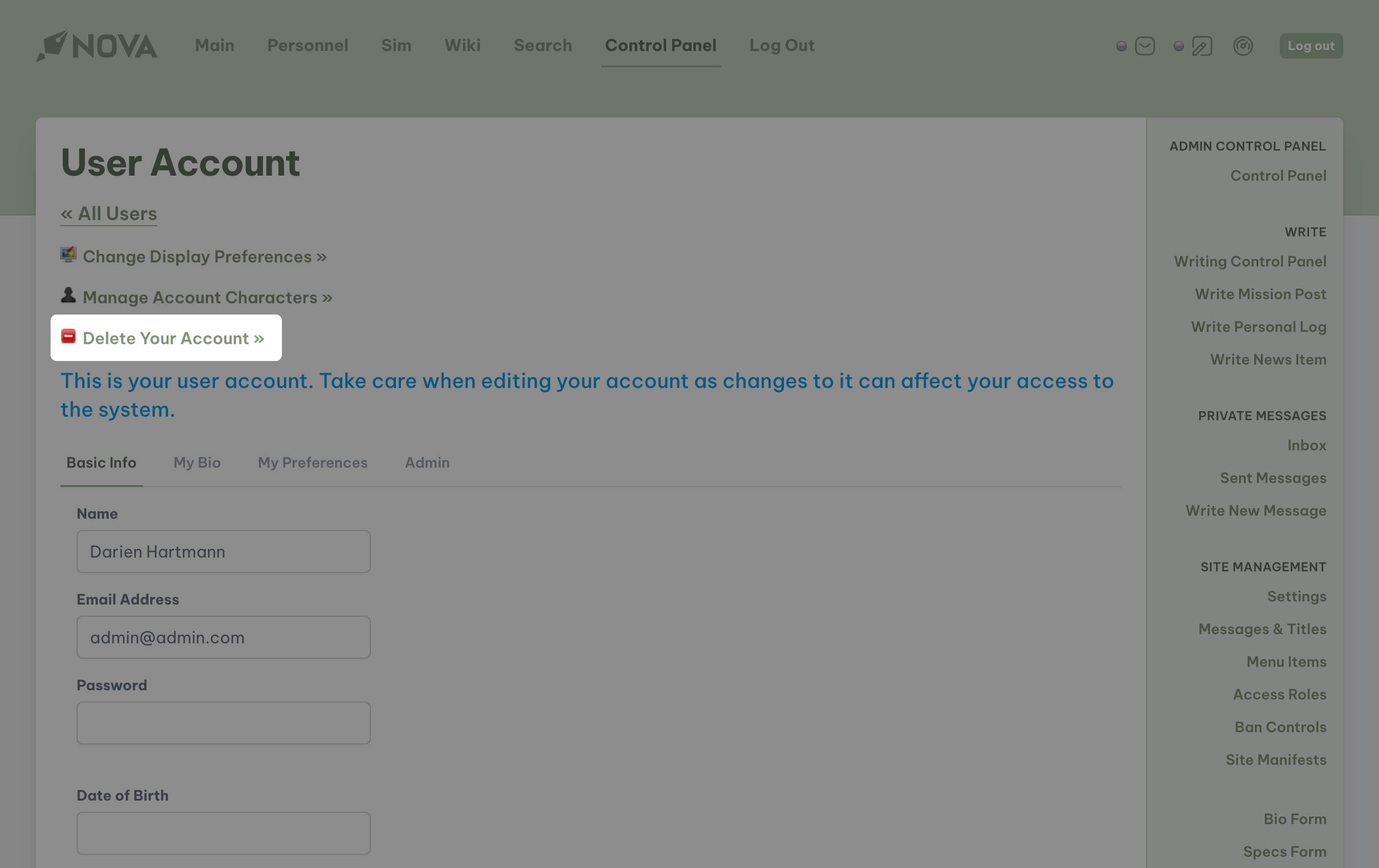 The Dashboard enables all players to have easy access to your character bio(s). To read any of these bios, or to edit them, access the dashboard and select the appropriate character’s name.Deleting your account