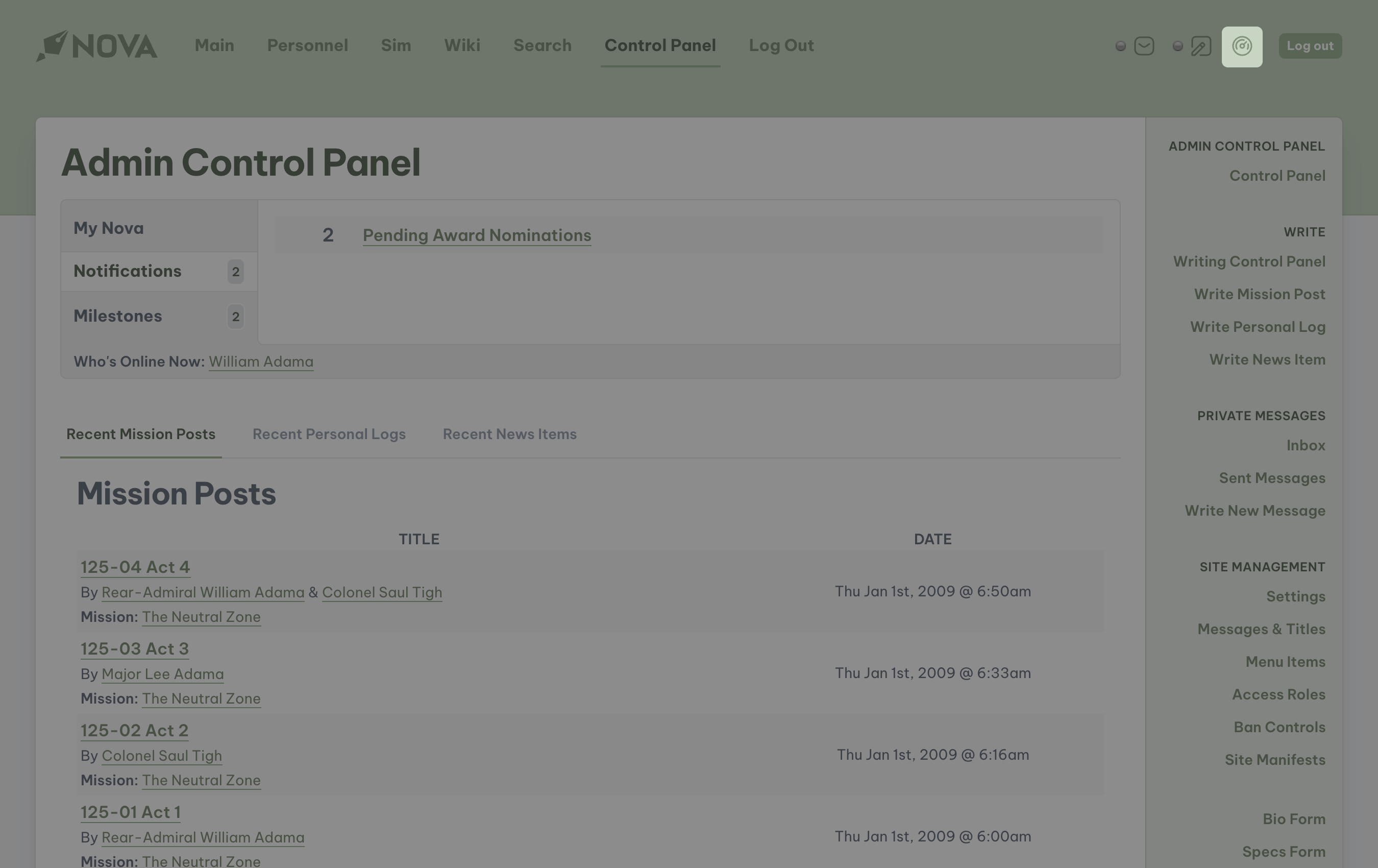 To access your private messages, access the Dashboard and click on the Private Messages link. You will be automatically directed to the Messaging Center where you can read and send private messages, including messages that you send to other players. To write a new message, click on Write New Message. Select the primary character of the user you wish to send a message to, and then enter the subject and the message you wish to send. Once all information is entered, select Submit. The message will be instantly sent to that user, and if that user has email notifications enabled, they will receive an email. To view all messages that you sent to other players, select Sent Messages.Editing characters