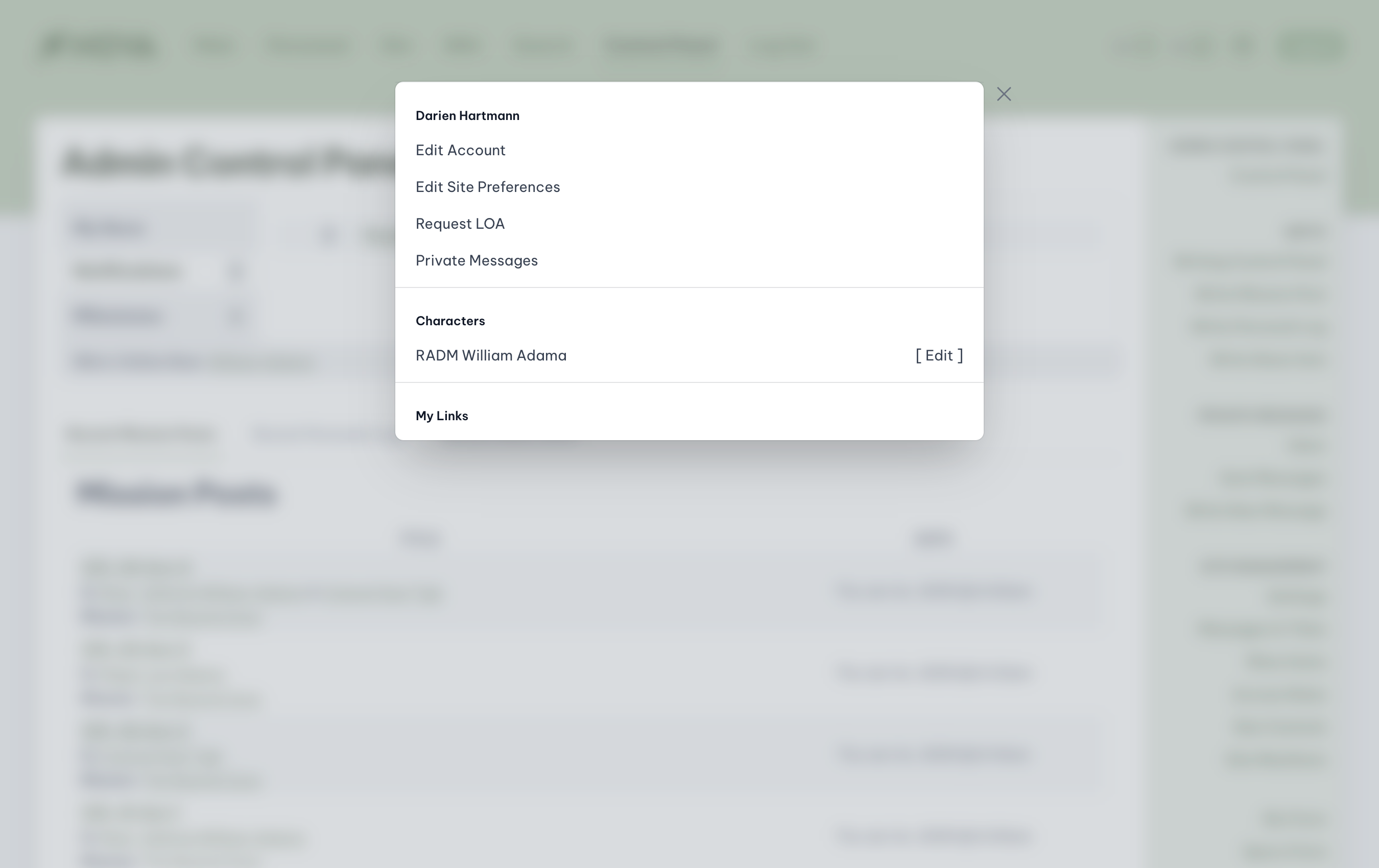If there are portions of the website you wish to have quick access to, such as the Enterprise’s deck listing, you can set up a link to that section under the My Links tab. Once saved, this quick link will be available on your dashboard. Under your link options, click on the dropdown for My Link #2 and locate Deck Listing. When all changes are complete, select Update. To see the new link in your dashboard, navigate to a new page and access the dashboard. You will see your custom links at the bottom of the dashboard panel.Requesting a leave of absence (LOA)